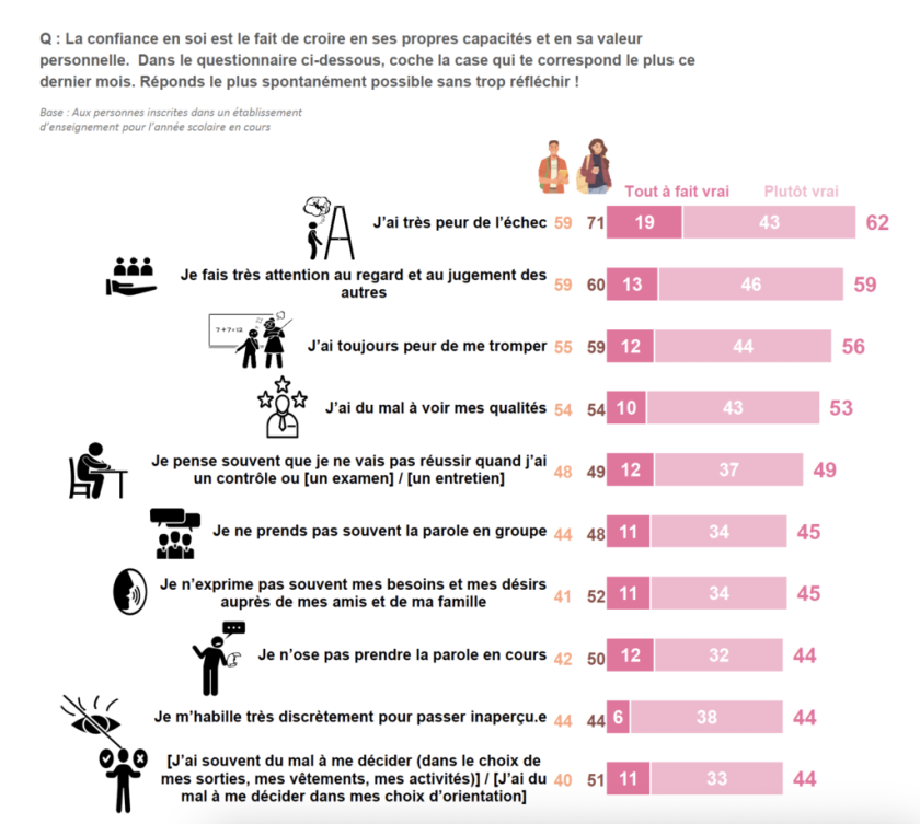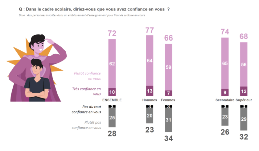 9 – Le manque de confiance en soi sur le plan scolaire affecte plus d’un jeune sur quatre (28%), en particulier ceux ayant un faible niveau social.